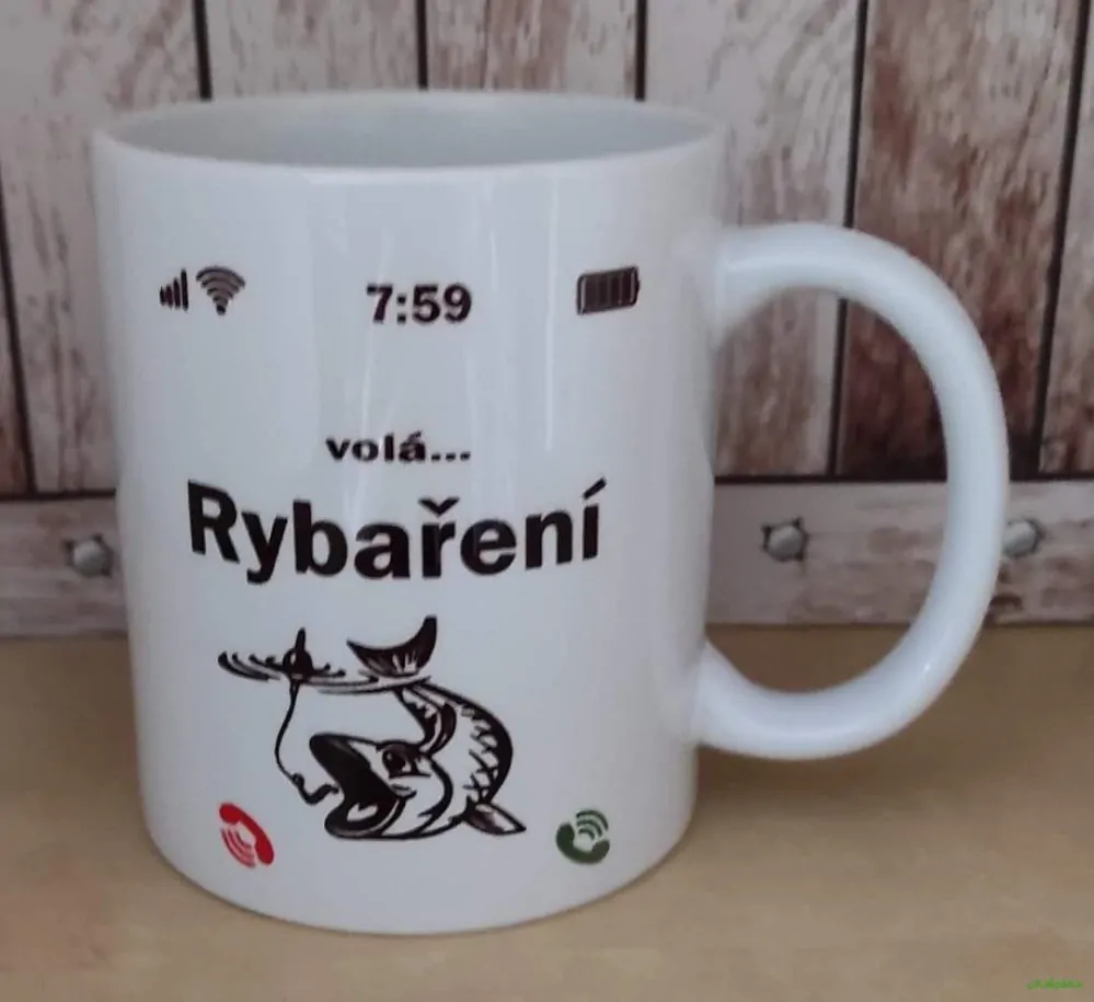 - Hrníček s potiskem VOLÁ RYBAŘENÍ