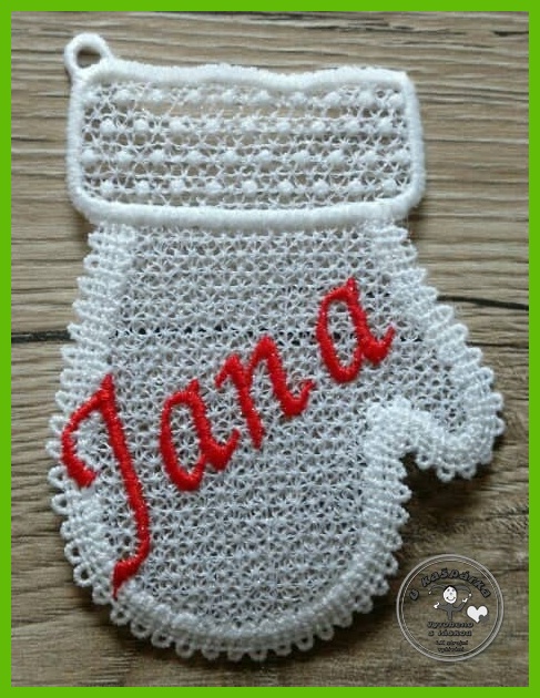 Vánoční ozdoba krajka - rukavice se jménem JANA7-14 dnů80 Kč/ ks